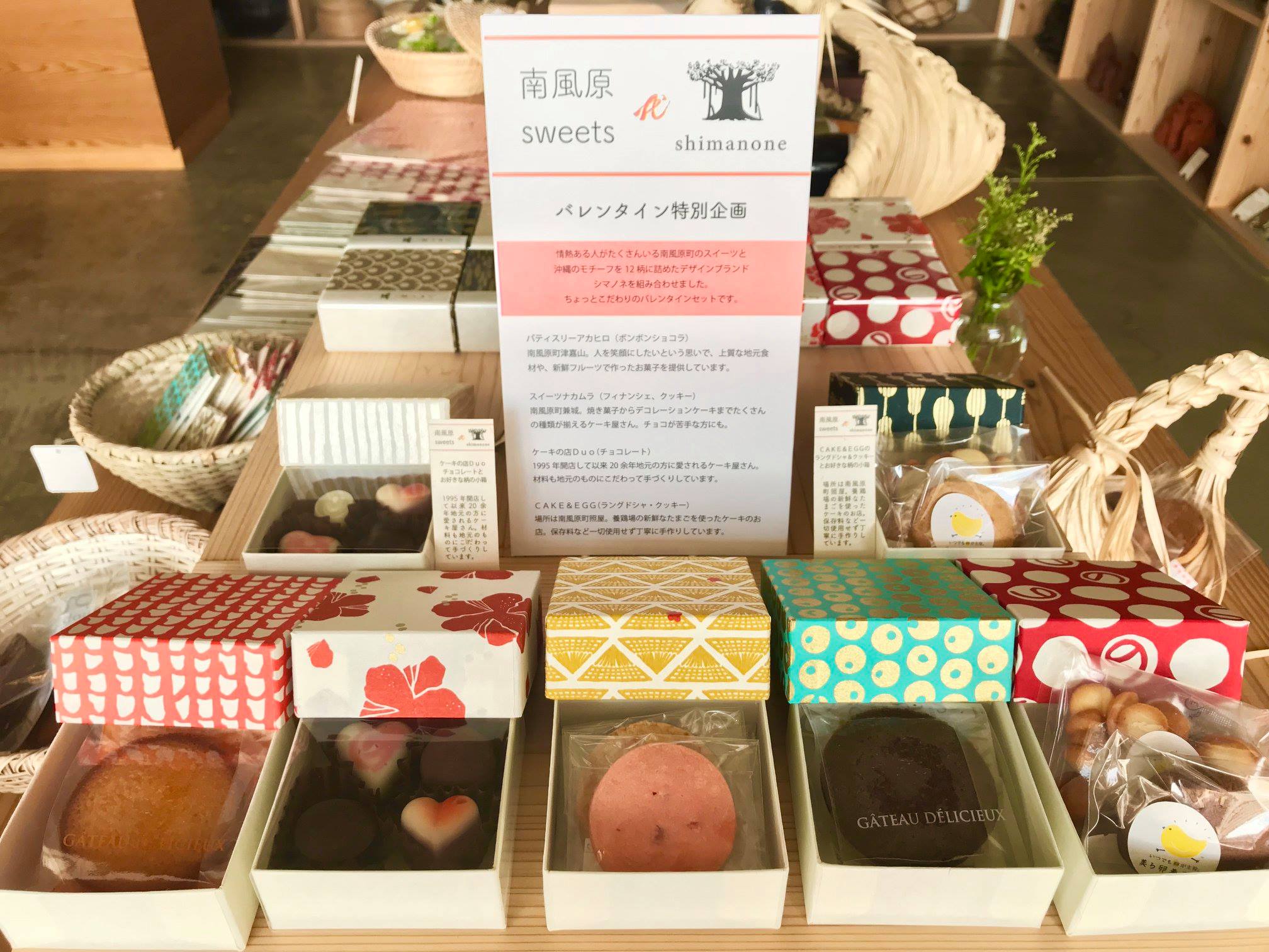 バレンタイン特別企画として南風原町のスイーツとシマノネを組み合わせたちょっとこだわりのバレンタインセットを販売中です。